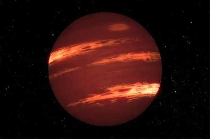 事实上在气态行星与恒星之间,还有一种名为棕矮星的星球,这种星球的质量已经逼近恒星质量下限了,但由于没有额外的质量输入,所以它内部的氢元素无法聚变,只有氘在燃烧,这就导致从外表看去它是一颗棕红色的气态行星,表面也有类似木星的条纹。