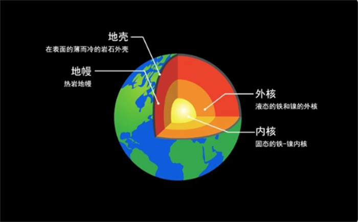 经过长时间的研究,科学家对地幔和地壳已有相当了解,但地核仍然保持其神秘面纱。目前的理论认为,地核分为外地核和内地核两部分,外地核是液态铁镍,约2080公里厚,它负责产生地球的磁场。外地核包裹着固态的内地核,后者主要由固态铁、镍和其他金属元素构成。