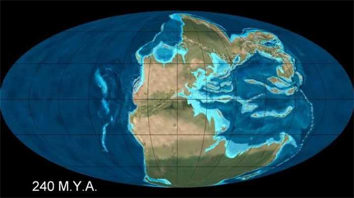 在接下来的数亿年中,板块持续碰撞挤压或形成新的大陆,直到大约3亿到1.8亿年前,汇集了现今所有大陆板块的盘古大陆登场。盘古大陆面积巨大,几乎将所有板块连成了一片,因此它也被称为超大陆或泛大陆。