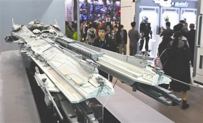 在星际公民展区,一款3D打印的“惩戒级宇宙飞船”模型很是震撼。其长度为5.5米、长1.3米、从支架到顶部总高1.3米,重量约为150公斤。“深圳英鸽数字工业有限公司负责人贾先生介绍,在设定中这是一款无畏舰,对幻迷中的飞船模型爱好者来说,观赏性及其设定可挖掘性很强。