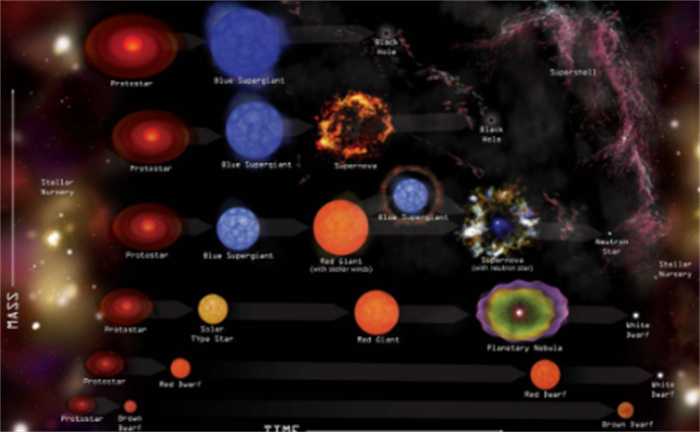 恒星的质量决定了其毁灭的剧烈程度和残骸的性质。太阳质量的8倍以上的恒星在死亡后会发生超新星爆发,这是宇宙中能量释放最强烈的事件之一。超新星爆发瞬间释放的能量相当于太阳一生中释放的总能量,并且爆炸物质以十分之一光速向外扩散,可以瞬间摧毁50光年内的任何生物。