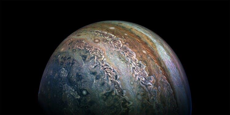 这似乎是一个显而易见的问题,但它的巨大风暴系统“大红斑”(Great Red Spot)到底延伸到木星大气层的深度究竟有多深?信不信由你,我们直到今年NASA的朱诺号(Juno)宇宙飞船进入木星,对这场巨大风暴进行了前所未有的近距离拍摄时,我们才知道答案。朱诺号的数据显示,太阳系最著名的风暴几乎是地球的两倍宽,其根源是穿透地球大气层约200英里(300公里)的风暴。