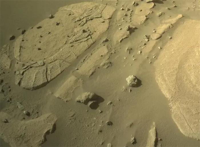 在火星杰泽罗陨坑内的古代三角洲区域,毅力号火星车发现了一些不同寻常的圆圈结构,呈现同心曲线状。这些结构的形态与地球上的某些生物相关的岩石结构相似,引发了科学家们的极大兴趣。杰泽罗陨坑被认为是数十亿年前的古湖泊遗址,是寻找生命迹象的理想场所。