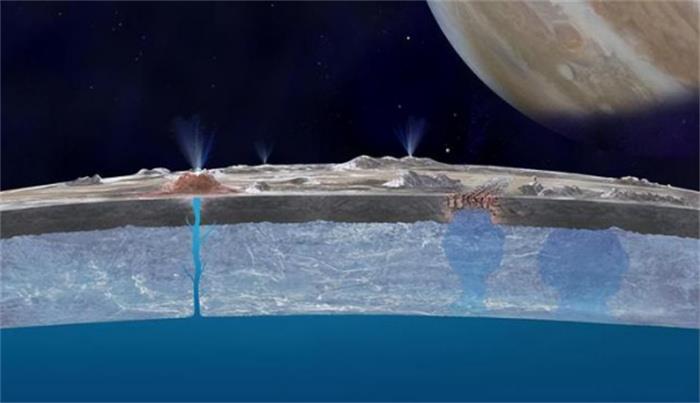 这一发现立即使木卫二成为研究的焦点。它表明木卫二冰层下的海洋是一个活跃的生态系统,液态水在木星的引力扰动下持续运动,而木卫二的内部核心也为海洋提供热量。在这种环境下,海洋内部孕育微生物的可能性是完全存在的。事实上,地球上的海洋微生物就是在38亿年前,受到海底火山口附近的热量催化下诞生的。