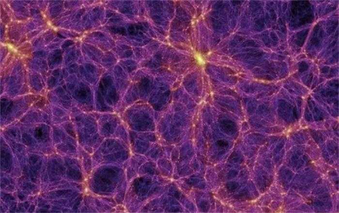 宇宙是通过网络结构组合在一起的,这个网络当中,星系团、超级星系都按照暗物质构成的丝状结构进行排列,结构之间是巨大的空洞,几乎不含有任何可观测物质。科学家认为这种结构的形成和最早期的宇宙量子涨落有关,这种涨落现象随着时间的推移,在引力的作用下逐渐放大,最终物质在宇宙中并不均匀分布。