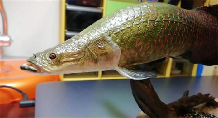 巨骨舌鱼的头部扁平,嘴巴巨大,虽然外观不尽人意,但它们的鳞片却颇具观赏价值,灰绿色的身体搭配红色的尾巴,展示了一种独特的美。