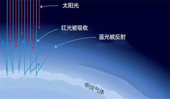 天王星只有蓝光与甲烷反射有关。天王星是整个太阳系中被较少探索的行星之一,其中最主要的原因来自于天王星的距离比较遥远,在距离太阳约18亿英里的轨道上运行。目前很少有航天器访问过,即便如此,研究人员依旧可以利用哈勃太空望远镜来观察天王星,从远距离观察,人们可以看出天王星是由冰质材料所组成的冰巨星,拥有气态大气层。