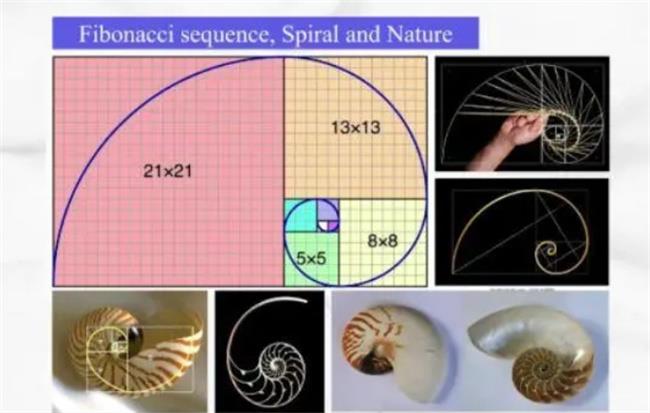 按照裴波那契数列,曲边长分别是1、1、2、3、5、8、13、21......的正方形,再将每个正方形的一个顶点当做圆心画出1/4的曲线,然后将所有的曲线连接在一起,最后就会形成螺旋线,这些螺旋线则被称为裴波那气旋线。