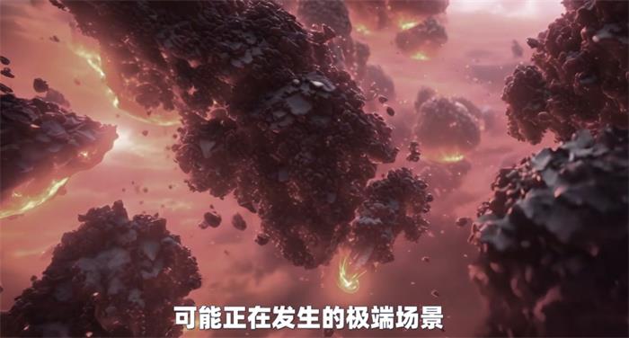 假设这颗行星的天空裂开,从天上掉落下来的不是火焰和熔浆,而是各种各样的易爆金属,这些金属在空中聚集形成了一片又一片的金属云,金属云在空中发生碰撞和融合,最终达到一个临界点发生剧烈的爆炸,爆炸所产生的光芒照亮了整个星球,甚至要比太阳所发出的光芒还要明亮,随着金属源的爆炸,整个星球的地面都随之震动,这颗行星的地壳深处也引发了连锁反应,引起山脉崩塌峡谷开裂。