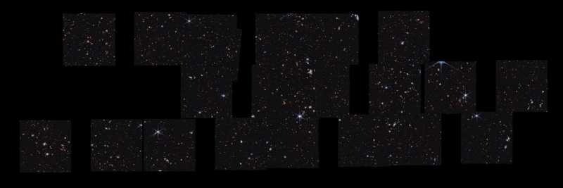 深深地凝视这幅广阔的图景。它是由詹姆斯-韦伯太空望远镜(James Webb Space Telescope)用近红外线拍摄的多幅图像拼接而成的--它实际上是在活动着。图片来源:NASA、ESA、CSA、Steve Finkelstein(UT Austin)、Micaela Bagley(UT Austin)、Rebecca Larson(UT Austin)、Alyssa Pagan(STScI)