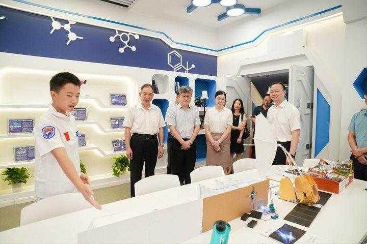 揭牌仪式后,与会嘉宾及师生代表参观了文海航天科技馆。馆内文海学子以自信从容的姿态,化身为小小讲解员,热情洋溢地向每一位访客介绍着各类航天展品、精细的模型以及互动体验设备,他们不仅展现了扎实的航天知识基础,更体现了卓越的沟通能力和对航天事业的无限热爱。