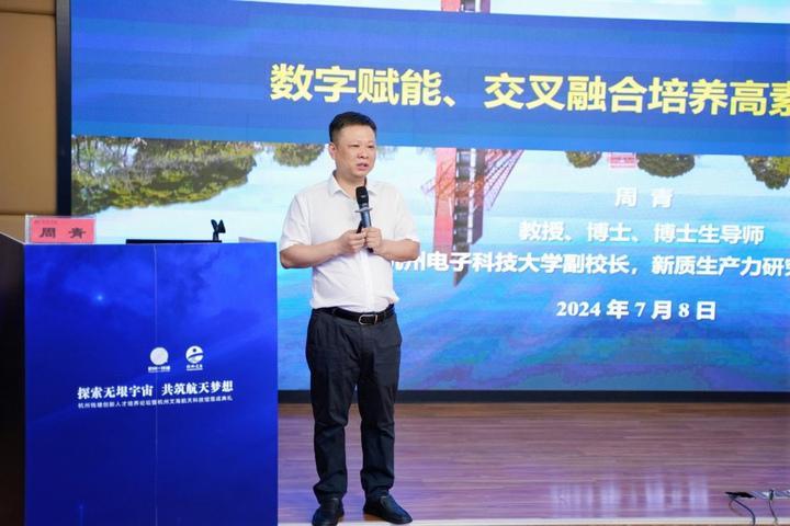 杭州电子科技大学副校长周青进行专题讲座《数字赋能、交叉融合培养高素质创新人才》,浙江省科学家精神宣讲团成员、浙江大学航空航天学院“百人计划”研究员孙书剑进行专题讲座《航天科技知识传播与系统工程思维教育思考》,全国航天科普教育基地、全国航天科技教育联盟成员单位、全国航天特色学校嘉兴市阳光小学副校长单菊伟带来主题报告《“四寻四问”:培养理工文艺复合型问天少年》,首批全国航天特色学校广东省江门市新会梁启超纪念中学团委书记梁杰创带来主题报告《打造特色育人品牌,探索航天文化强校》。