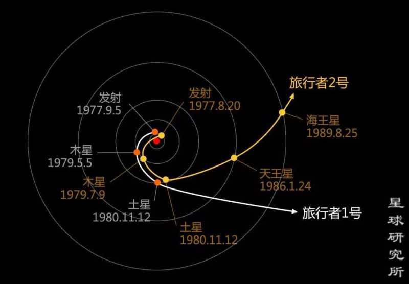 ▼“旅行者1号/2号”飞行路线。资料来源@NASA,制图@郑伯容/星球研究所