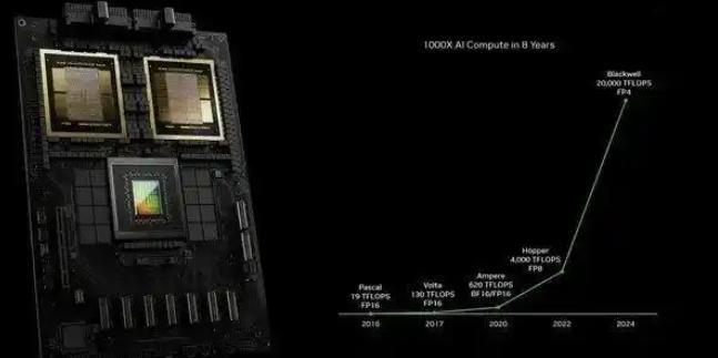 英伟达(NVIDIA)在GTC上发布了blackwell架构和同名AI处理器B100、B200 和 GB200,Blackwell GPU B100 使用了两个台积电 4NP 工艺制造的芯片,芯片面积为 814 平方毫米,接近了 EUV 光刻技术的理论极限值(858 平方毫米),两个芯片通过 C2C-Interface 进行相连,组成一个 "1600 平方毫米 " 的超大处理单元。CUDA 架构成为深度学习的重要工具,为人工智能的发展提供强大的计算支持。