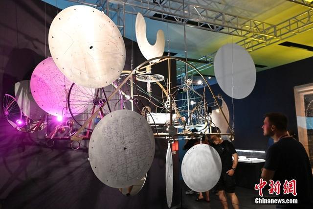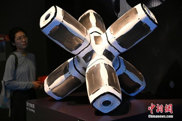 7月2日,由中国国家博物馆、瑞士驻华大使馆、瑞士洛桑联邦理工学院主办,清华大学天文系、清华大学美术学院协办的“宇宙考古:时空探索”展览在北京中国国家博物馆开展。展览分为“仪器和技术:绘制宇宙”“大数据的星空”“可持续的太空”“未来:行星之旅”四个部分,融科学探索和艺术诠释为一体,将宇宙中真实、分散、抽象的数据,通过数字装置、互动体验、动态雕塑和前瞻性设计等多种形式呈现出来。图为参观者在观看来自瑞士的动态雕塑《巡星雕塑》。 中新社记者 田雨昊 摄