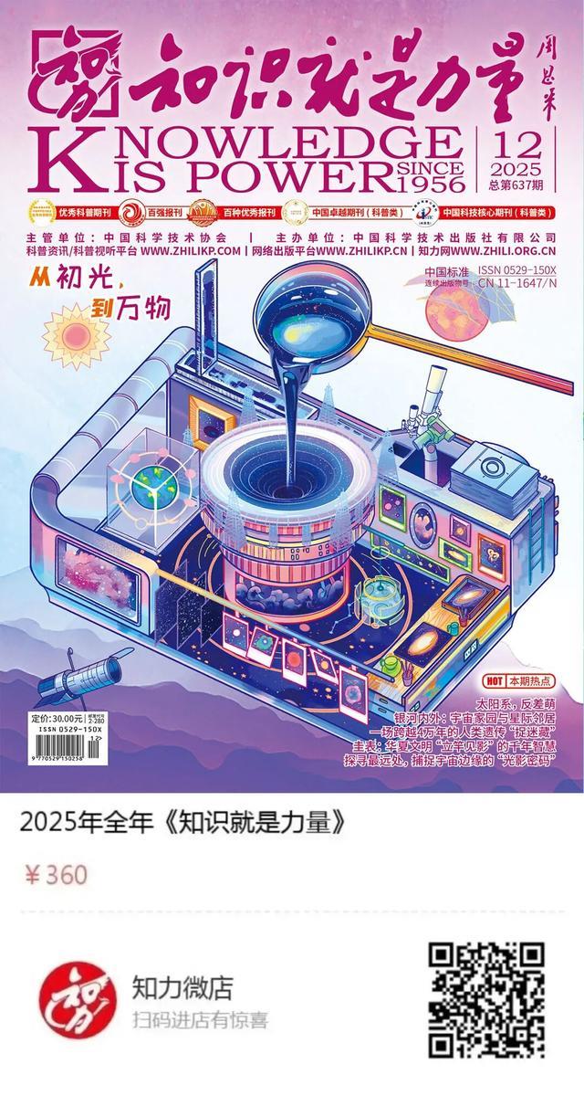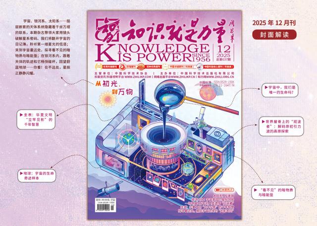 当我们抬头仰望星空,是否曾想过,那些闪烁的星光背后,隐藏着宇宙怎样的秘密?《知识就是力量》2025年12月新刊封面正是一幅精心编排的宇宙探索地图。让我们跟随封面上的图案,踏上一场穿越时空的宇宙探索之旅。