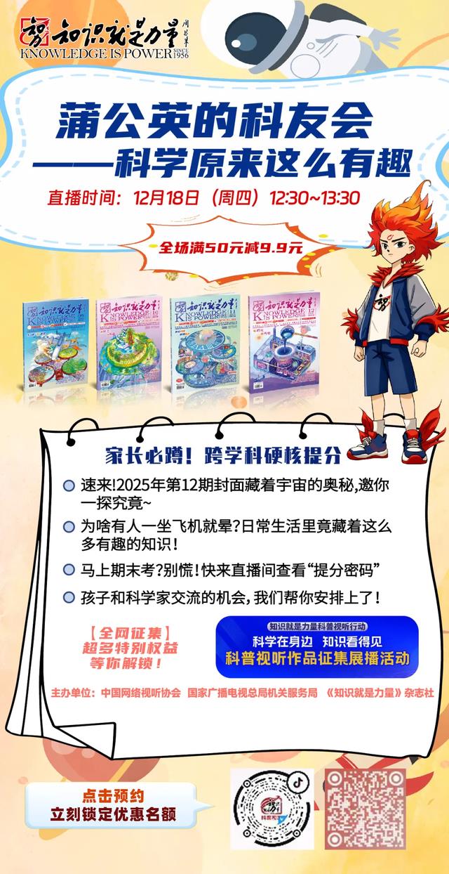 想了解更多有趣的科普知识,欢迎预约12月18日12:30《知识就是力量》官方直播间,期待和您相见。