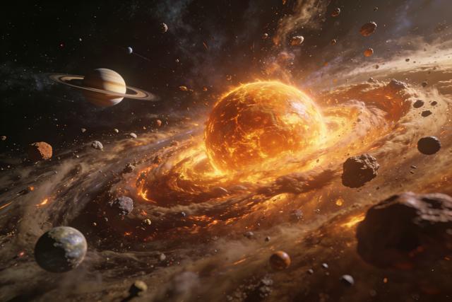 而原星云盘剩下的物质也会在引力的作用下慢慢聚集,形成各种岩石行星、气态行星。