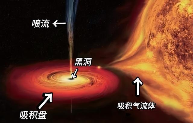 当黑洞从周边吸积气体尘埃或小型天体时,在引力的影响下,物质与磁场之间剧烈的摩擦释放出耀眼的光芒和大量的热量,物质被拉扯成细丝状并且围绕着黑洞高速旋转,形成一个耀眼的吸积盘。