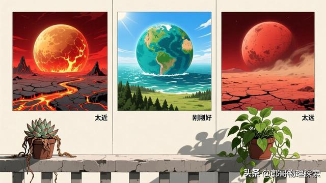 首先,它不能离恒星太近,也不能太远——太近像金星,大气层变成温室,表面温度能把铅融化;太远像火星,大气层冻住,水要么结冰要么逃逸。这个"刚刚好"的区域,科学家叫它"金发姑娘区"——不冷不热,正好。