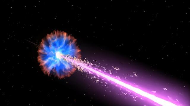 于是,一个新的谜题诞生了。这到底是什么?为了搞清楚原因,天文学家开始进行更详细的多波段观测。很快,他们发现了一个关键线索。这种射电辐射的特征,非常像一种物理过程——相对论喷流产生的同步辐射。简单理解就是:当物质以接近光速喷射出去时,会把周围的电子加速到极高能量。这些电子在磁场中运动,就会释放出强烈的辐射。这种现象在宇宙中通常只会出现在非常极端的事件里。比如:黑洞喷流、中子星合并、或者——伽马射线暴。说到伽马射线暴,就必须认真说一句。它是宇宙中最恐怖的爆发现象之一。很多天文学家甚至认为:它的能量规模,仅次于宇宙大爆炸。