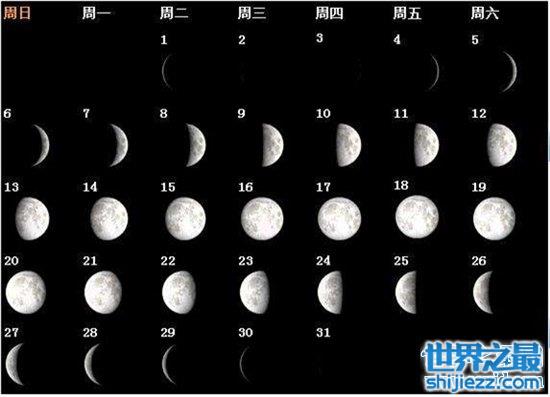 等它变成圆月之后也不会维持多久,十五号十六号两天之后月相又有所改变,这次不同于上半月从无到有,而是要从一轮满月逐渐变成了月牙,只不过这一次的凹口是向着东方,逐渐到它消失,我们一个月也就这样度过了。