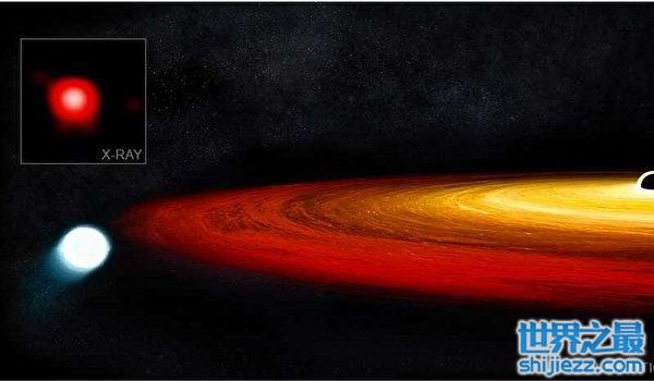 这颗白矮星绕着黑洞运转过程中,每次绕行到轨道上距离黑洞最近的地点时,黑洞还会从白矮星上吸走一部分物质。这些被吸走的物质融进黑洞周围的吸积盘,并放射出X射线,也就是研究人员所得到的X射线数据。