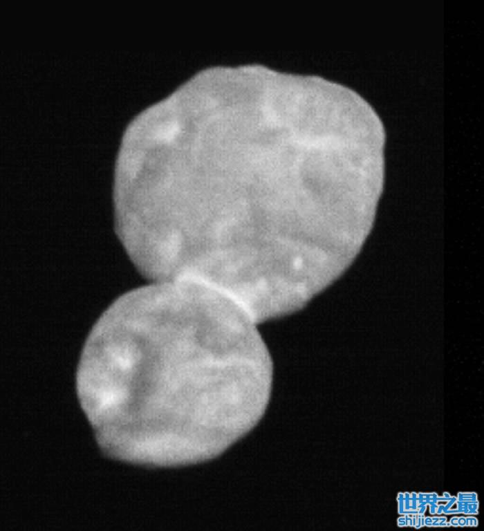 现在,科学家可以确定MU69的形状像是个保龄球瓶,由两个椭圆形的球体组合而成。研究团队还计算出MU69每15或30小时自转一圈,且自转轴朝向地球,看起来就像是个面对着地球的螺旋桨。因此,我们总是看到MU69被太阳照射到的那半面,这也解释了为何MU69在每次自转时,不会像科学家原本所预期的那样,亮度会变亮后再度变暗。在未来几天,新视野号将会传回更高分辨率的影像。