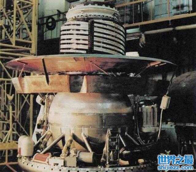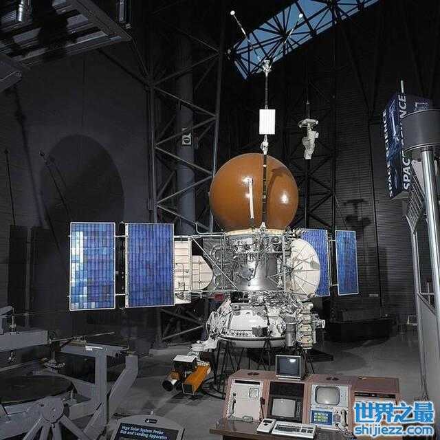 维加号登陆器的宇宙飞船主体和登陆装置的工程模型,位于维吉尼亚州的史蒂文史蒂文.乌德沃尔哈齐中心(Steven F. Udvar-Hazy Center)。该中心是美国史密森尼国家航空太空博物馆(Smithsonian's National Air and Space Museum)的一部分。 PHOTOGRAPH COURTESY OF SMITHSONIAN’S NATIONAL AIR AND SPACE MUSEUM