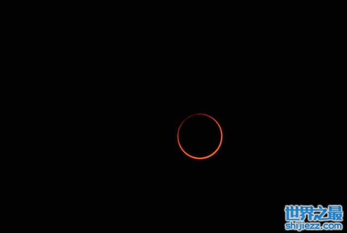 日环食发生时,天空中的太阳变成了一个圆环,金光灿灿犹如一只‘金指环’。