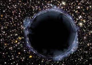 一个像太阳这样大的恒星自身引力如此之大,可能最终收缩成一个高尔夫球,甚至〝什么都没有〞。由于无限大的密度,崩坍了星体具有不可思议的引力,附近的物质可能被吸进去,甚至光线都不能逃脱──这是看不见它的原因。这个深不可测的洞,就被称为〝黑洞〞。科学家相信大多数星系的中心都有黑洞,包括我们身在其中的银河系。根据相对论,90%的宇宙都消失在黑洞里。所以一种令人吃惊的说法是:〝无限的黑洞乃是宇宙的本身〞。