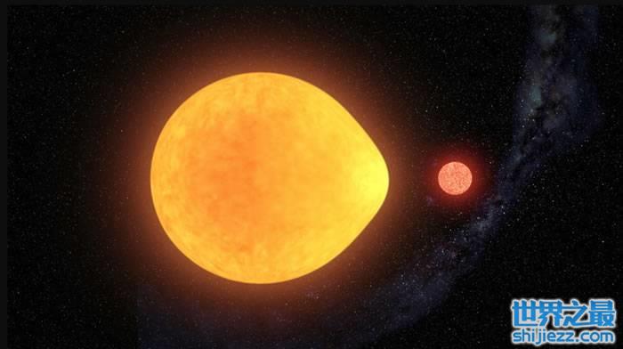 这颗被称为HD74423的恒星其质量大约是太阳的1.7倍,其距离地球约1500光年。在那里它并不一颗孤独的星球--还有一颗红矮星和两颗围绕彼此运行的两颗恒星(运行时间不超过2天)。