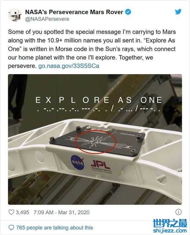 NASA证实Perseverance携带摩斯码Explore As One(让我们一同探索这无垠深空)