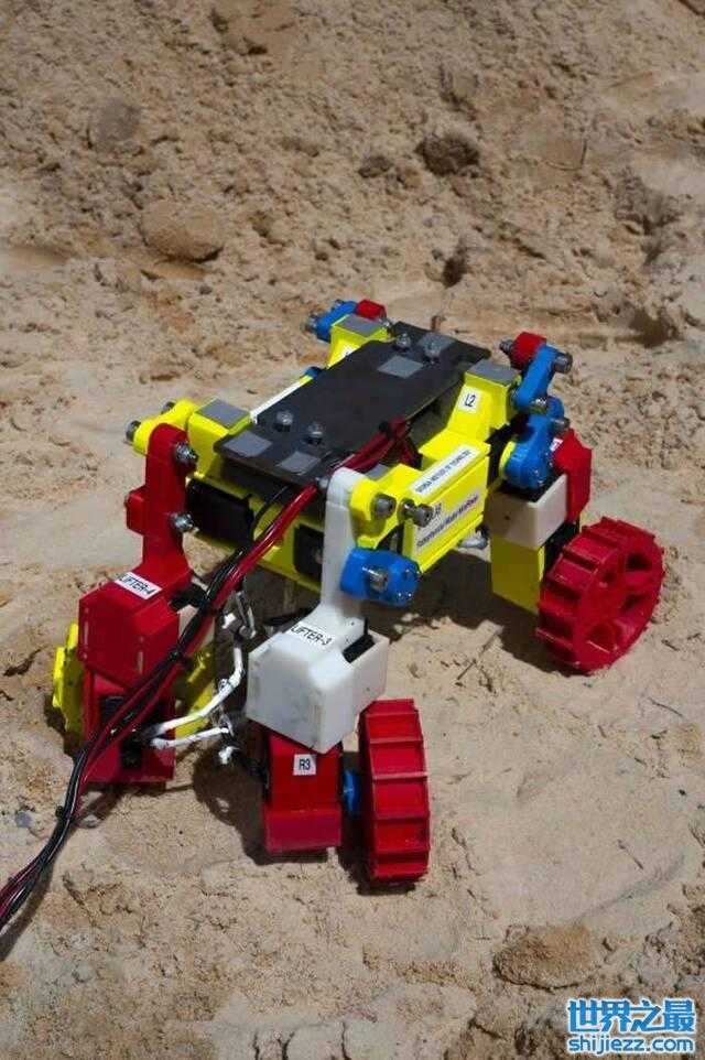 据了解,这个小机器人拥有12个不同的马达来驱动四个轮式附件进而使其能进行各种各样的操作。其中最令人印象深刻的是划桨、行走和旋转轮子的组合,机器人通过这些动作克服了陡峭的罂粟种子斜坡。