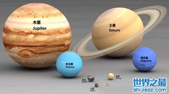 把太阳系的八大行星放在一起,就是图片中的这个样子,水星最小,只有土星和木星有的一比。