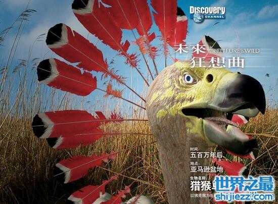 猎猴鸟,是一种不会飞的大型鸟类,它们是草原上最敏捷、最凶悍的掠食者,通常成群生活和狩猎。那时,未来世界的动物中已没有了鸵鸟,而是被猎猴鸟取代。它们在大草原上横行霸道,四处围剿狒秃猴群。它们的奔跑速度异常迅捷,甚至能超越林火蔓延的速度,能赶在猎物被火海吞噬之前抢先一步猎杀得手。