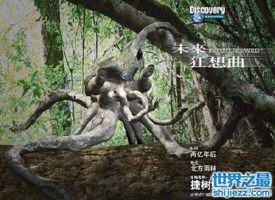 捷树鱿是一种想象的在未来世界的动物,生活在南极洲北部雨林,食性复杂,和巨陆鱿鱼是同一祖先,都是由鱿鱼进化而来,捷树鱿行动敏捷,成天开足马力在枝叶间跳来跳去。它们的智慧程度和人类差不多,是一种喜欢群居的动物。其天敌为巨陆鱿鱼,但它们可以用石块赶走天敌。