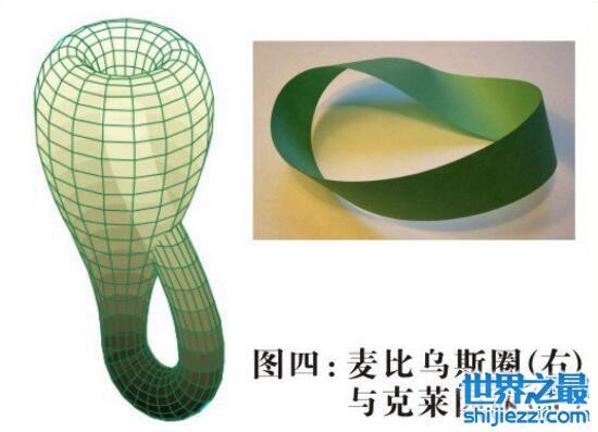 在1882年,著名数学家菲立克斯·克莱因 发现了后来以他的名字命名的著名“瓶子”。克莱因瓶的结构可表述为:一个瓶子底部有一个洞,现在延长瓶子的颈部,并且扭曲地进入瓶子内部,然后和底部的洞相连接。和我们平时用来喝水的杯子不一样,克莱因瓶没有“边”,它的表面不会终结。
