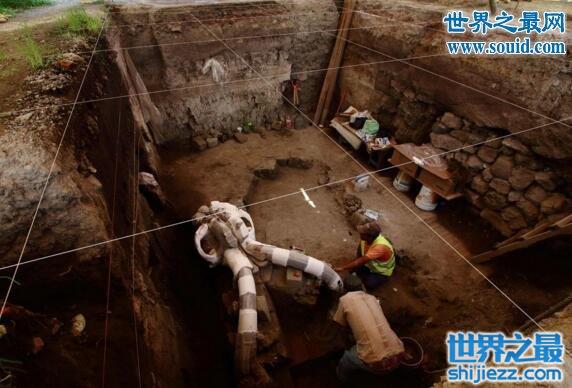 墨西哥中部城市图尔特佩克的一群工人,早前在一条地底去水工程中,发现一具长毛象尸骨。考古学家自4月起开始挖掘,至今近乎取出其头部及象牙,这具尸体可追溯至1.2至1.4万年前,它死后曾被人类分尸取肉。这具尸骨位于一条近郊道路的地底两米深处,学者相信这具年约20至25岁的长毛象,因深陷泥泞,无法挣脱致死。