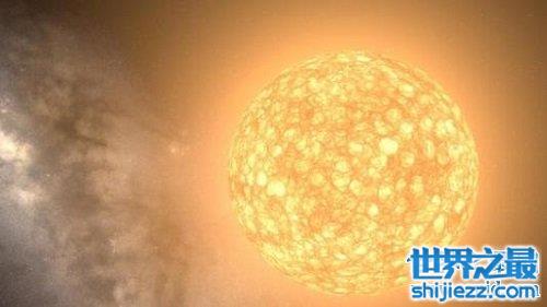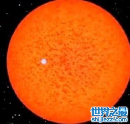 我们的巨大的太阳,在这颗巨无霸星球面前,只是一个像素点的大小而已!盾牌座UY位于遥远的盾牌座,半径就比太阳大了两千倍,体积则达到了太阳的50亿倍左右。但是质量只有其12倍而已。当然块头越大死的越快,科学家推测,这颗已知最大的星体的寿命只有五千万到七千万年左右的寿命。在之后,它可能就会坍塌成一个中子星或者黑洞。