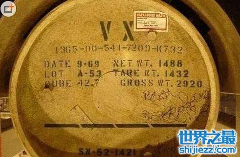 这是一种无色无味的油状液体,一旦接触到氧气,就会变成气体。主要是以液体造成地面、物体染毒,可以通过空气或水源传播,最危险的是几乎无法察觉。体皮肤与之接触或吸入就会导致中毒,进而造成中枢神经系统紊乱、呼吸停止,最终导致死亡。伊拉克曾在战争中使用过VX神经毒素,1克就能杀死50,000人以上。