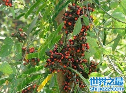 相思子毒素是从豆科藤本植物相思子( )的种子中提取的一种剧毒性高分子蛋白毒素,其含量约占种子2 8%~3 0%。相思子毒素存在4种同族毒素( ),即 - 、 - 、 - 、和 - ,相对分子质量介于63 ~67 之间,它们由不同的基因所编码,但同属于一个多基因家族;其中 - 、 - 由于其 链凝集活性低而只有较弱的细胞毒性作用;而 - 、 - 则有极强的细胞毒性,小鼠的 50为0 04 / ,成年人摄入的致死剂量为5 0 / ~7 0 / ,其毒性强度是蓖麻毒素(小鼠 503 0 / )的70 多倍,已被列为潜在的重要毒素战剂和生物恐怖病原物质之一。成年人摄入的致死剂量小于0.01克,其毒性强度是蓖麻毒素的70 多倍,相思子毒素是目前已知最毒的植物毒素之一,已被列为潜在的重要毒素战剂和生物恐怖病原物质之一。