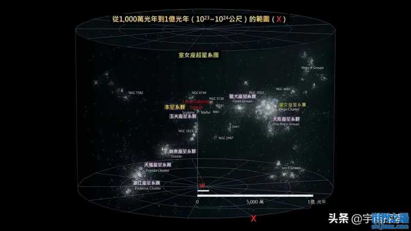 室女座超星系团上面还有拉尼亚凯亚超星系团,宇宙网,一直到可观测宇宙,直径达到930亿光年!