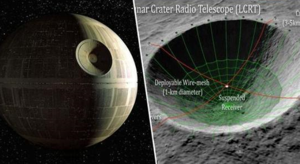 美国为此已经画出来了一个设计图,我们通过设计图可以发现美国计划利用月球上的一个深坑来完成对于望远镜的设计,其实我国的天眼望远镜口径是500m,已经足够大了。可以接收来自于地球之外30万km之内的信号,可是美国预设的这个望远镜则是能够接收到来自于整个太阳系的波动。可以看得出美国的决心。