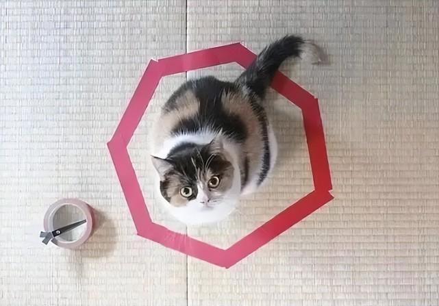 不过对于有些动物来讲,这种“画地为牢”的方式有时候会行得通,比如说猫,在地面上画一个圈把猫围住,猫似乎毫无办法,突然变成了“二维生物”,不知道该如何逃脱那个圈。