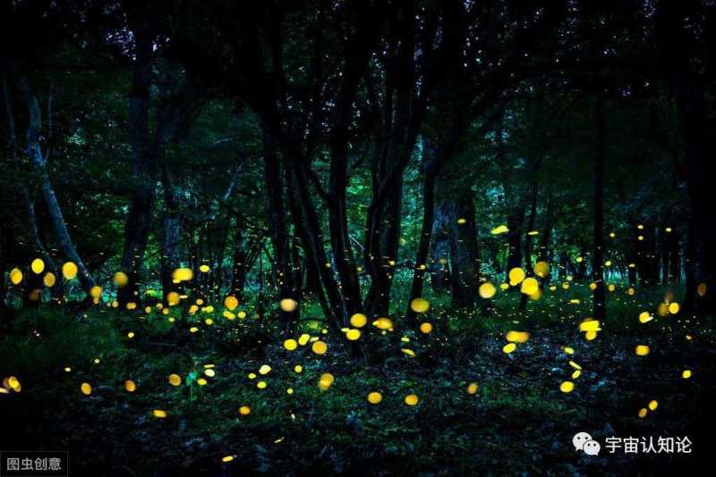 夏日,树林中萤火虫光