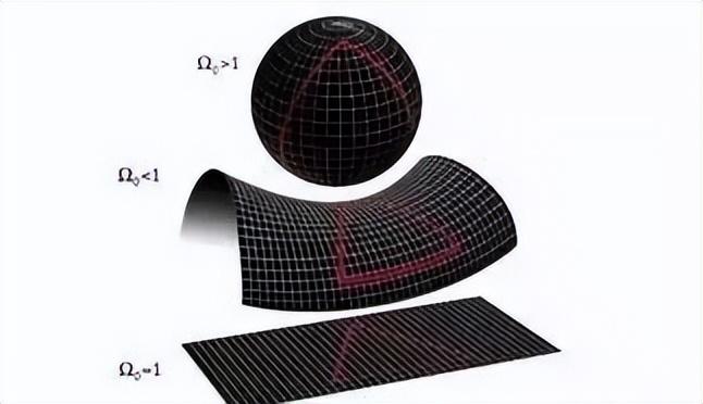 根据广义相对论,宇宙时空是弯曲的,宇宙中不存在绝对平直的方向,方向的指向轨迹都是沿着弯曲时空的“测地线”,光线轨迹也不例外。宇宙形状到底是开放式的马鞍形或平面?还是封闭的球形?目前还未有定论。