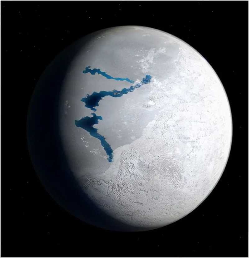然而,水的缺点也很明显。固态的水(冰)反射率很高。一旦行星表面形成了一定规模的冰盖,它就会把大部分恒星辐射的能量反射回去,减少行星的能量供给,导致温度继续下降,冰盖继续扩展。这就是地球上反复发生冰川期,甚至几次形成全球冰封的原因。