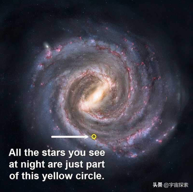 更悲催的是,咱拿肉眼看到的所有星星,都在这个黄色圈圈里。在神级外星人眼里,咱跟坐井观天的蛤蟆没啥区别。