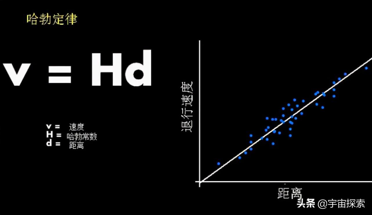 由于宇宙在不断地膨胀,所以通常把我们生活的空间类比为气球的表面(发现好多人误解了:气球的径向是时间维,亲们,除了气球表面之外没有别的空间,也没有所谓的宇宙外面),在气球表面上的每一点都在彼此远离,其远离的速度与两点之间的距离成正比,这也就是著名的哈勃定律。